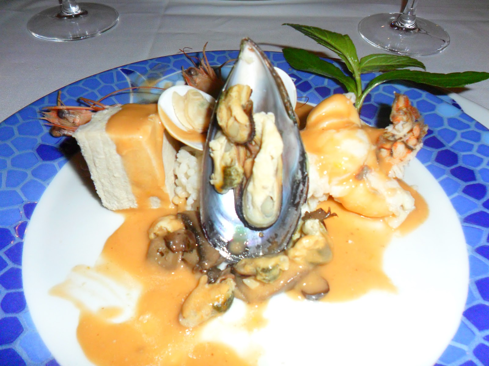 That evening it was the turn of the Seafood A La Carte. A nice meal but for me, the worst of the A La Carte options. I had Seafood Cocktail to start followed by a tepid Tomato soup. My main was a Prawn dish ( I didn't have to peel these ones) and I had Tiramisu to finish. The Mrs had a Lobster Bisque followed by a Selection of Seafood and a Chocolate Cake to finish